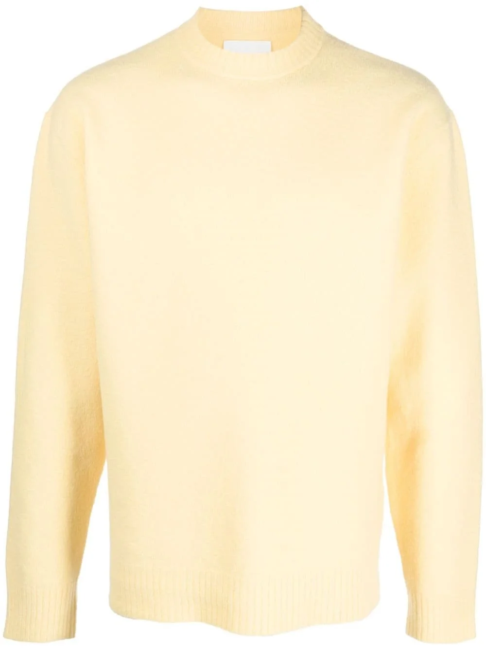 ribbed-trim wool jumper Highlights - Pastel yellow - Wool - Knitted construction - Ribbed trim - Crew neck - Long sleeves - Straight hem Made in Italy Composition Wool 100% SIZE & FIT Model measurements Height 6 ft 1 in(1.85 m) Bust/Chest 38.58 in(98 cm) Hips 37 in(94 cm) Waist 30.31 in(77 cm) Measurement LENGTH 27.95 in(71 cm) SLEEVE LENGTH 25.59 in(65 cm) Shoulder Width 7.48 in(19 cm) FittingInformation Designed for a relaxed fit, this piece allows for comfort and movement when worn The ribbed hem offers a close, comfortable fit Made with a midweight knit, this piece offers some stretch Washing instructions Dry Clean Only