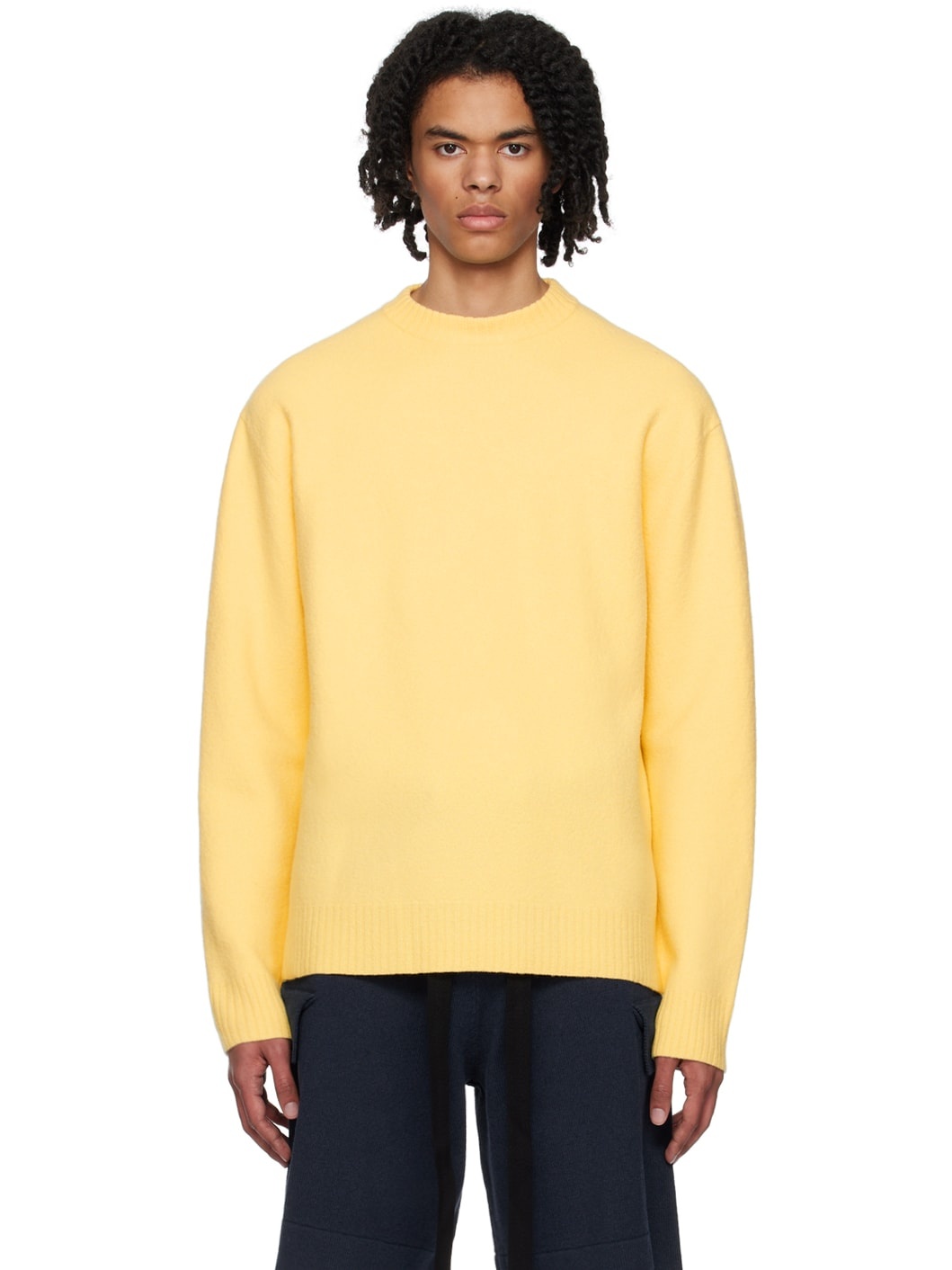 Brushed knit wool sweater. · Rib knit crewneck, cuffs, and hem · Dropped shoulders Supplier color: Lemon