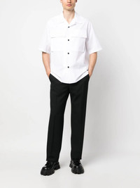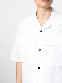 JIL SANDER Flap Pocket Cotton Shirt White Highlights optical white cotton logo patch to the rear camp collar front button fastening two chest flap pockets short sleeves straight hem Composition Cotton 100% Washing instructions Dry Clean Only Wearing The model is 1.86 m wearing size 48