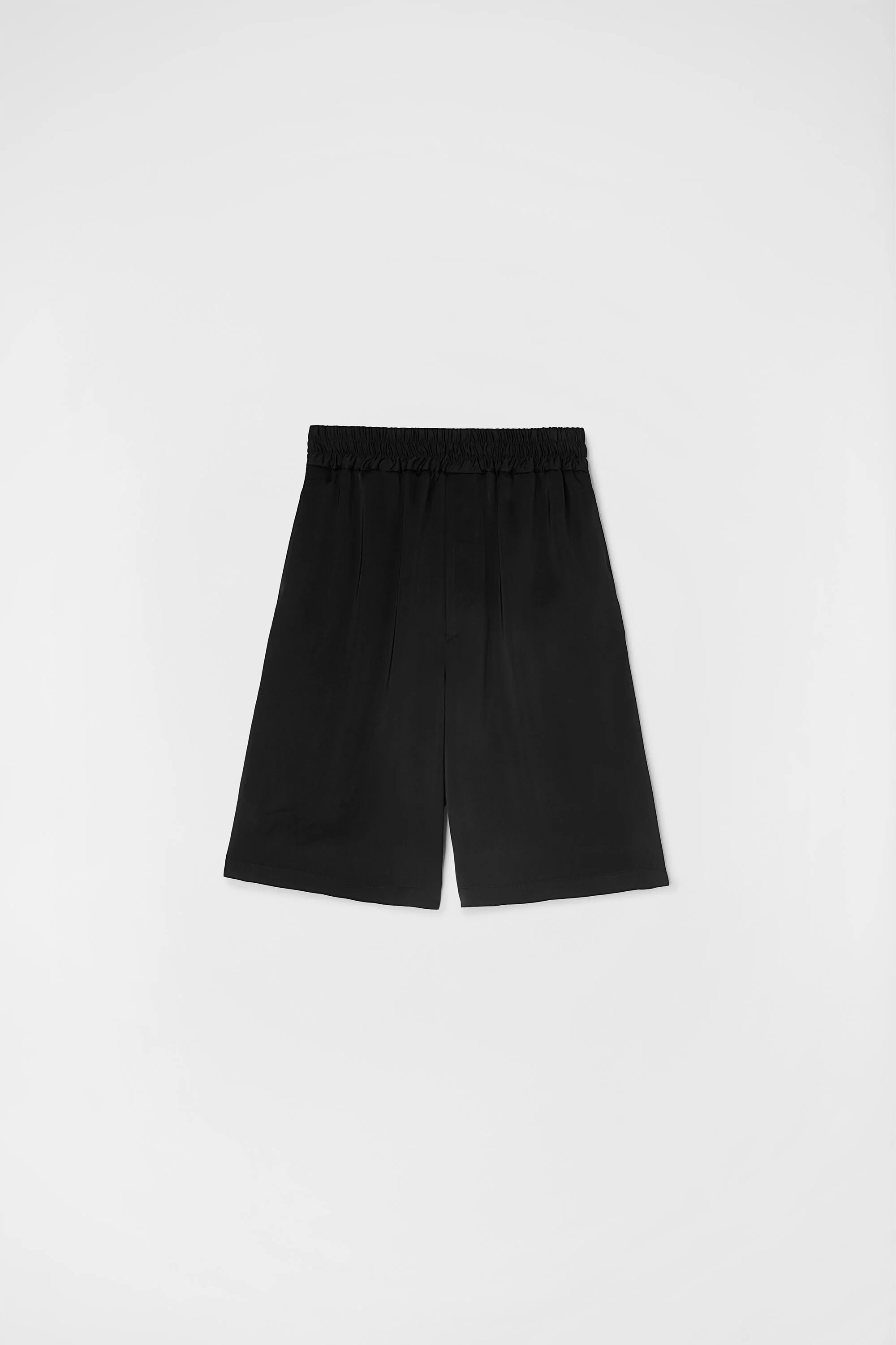 Fluid viscose shorts Details - relaxed fit - regular waist and crotch - elasticated waist - button closure - side-seam pockets and back welt pockets - viscose pocket lining - fluid viscose - 100% viscose-rayon - made in Italy - StyleID: J23KA0108J65022001 Care - dry clean only - iron with care Fit - model is 187cm/6'1" and is wearing a size 46 IT - Please note that the physical label of the item will show the Italian size