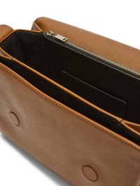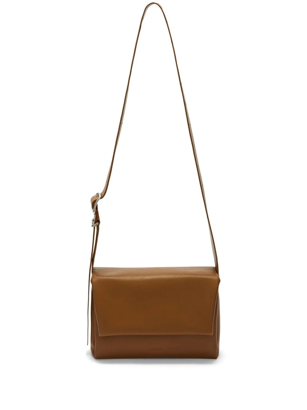 Folded small leather shoulder bag Highlights - Brown - Calf leather - Foldover top with magnetic fastening - Adjustable shoulder strap - Embossed internal logo - Main compartment - Zip fastening Made in Italy Composition Outer: Calf Leather 100%