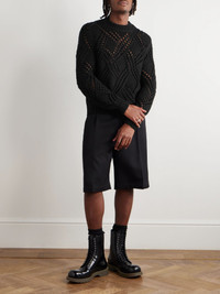 Jil Sander's sweater is open-knitted with a diamond pattern, which creates nice dimension when layered over a contrasting T-shirt. It's made from insulating wool and has thick ribbed trims. Size & Fit - Fits true to size. Take your normal size - Designed for a relaxed fit - Mid-weight, open knit - Model is shown wearing an IT 48 - Model measures: chest 38"/ 96cm, height 6'0"/ 183cm Details & Care - Black wool - 100% wool - Dry clean