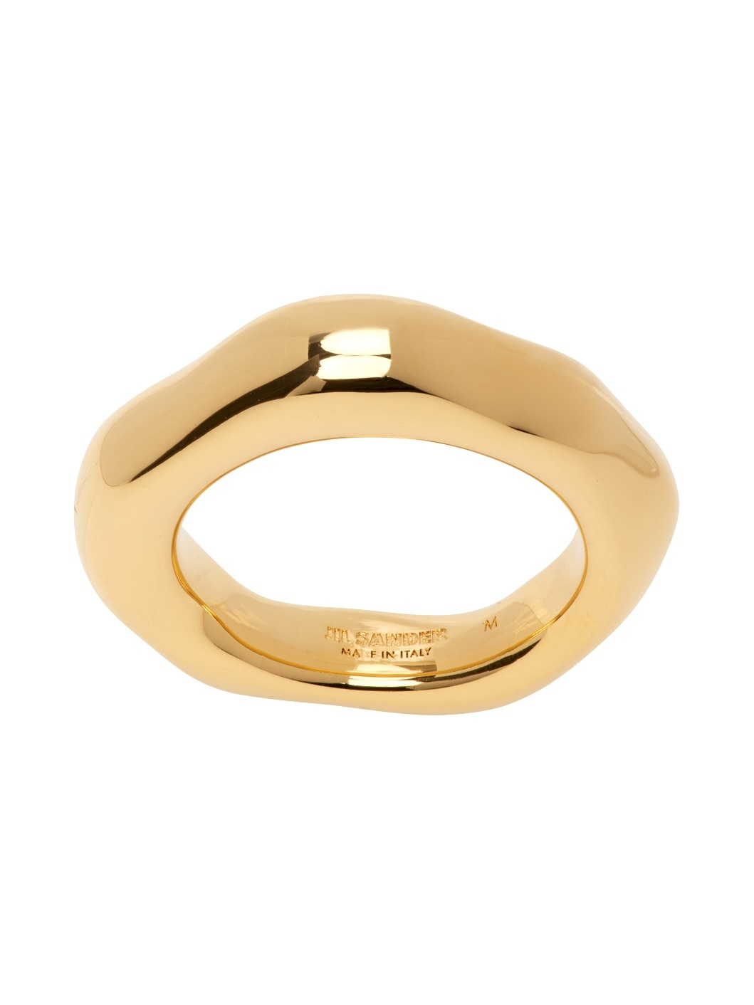 Handcrafted band ring in gold-tone brass. Textured detailing throughout. Supplier color: Gold