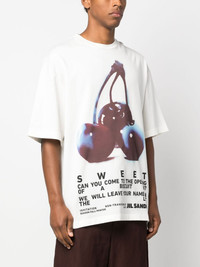 graphic-print cotton T-shirt Highlights - White - Cotton - Graphic print to the front - Round neck - Short sleeves - Straight hem Composition Cotton 100% SIZE & FIT Model measurements Height 6 ft 2 in(1.88 m) Bust/Chest 37.8 in(96 cm) Hips 35.8 in(91 cm) Waist 29.9 in(76 cm) FittingInformation Designed to be unstructured, offering a loose fit throughout Made from a midweight non-stretch fabric, this piece offers minimal elasticity when worn This piece fits true to size – take your usual size