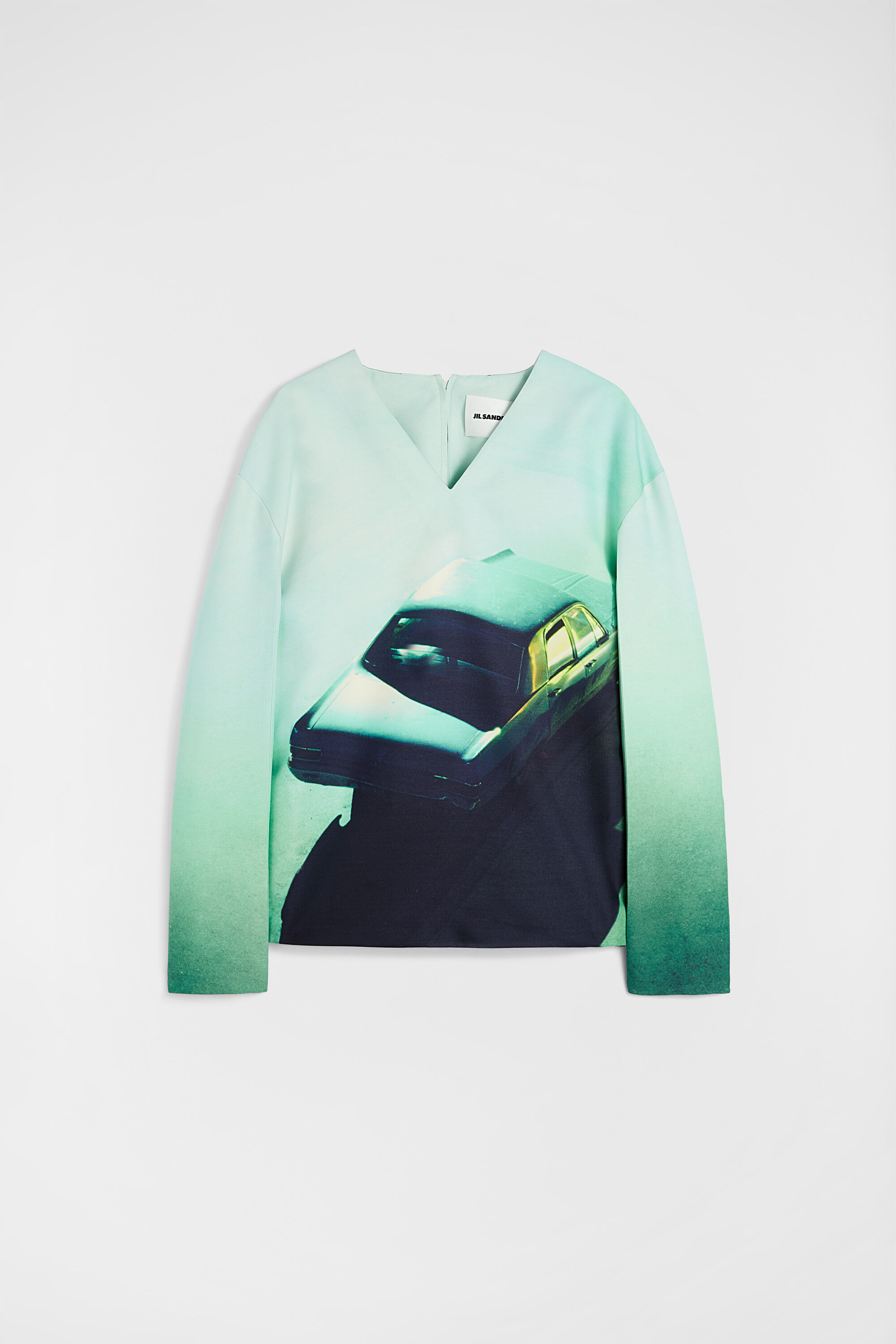 Long-sleeved silk and wool saglia printed top Details - relaxed fit and boxy shape - v-neck - centre-back zip closure - graphic zip puller - viscose lining - printed silk and wool saglia tailoring - 76% wool 24% silk - made in Italy - StyleID: J21SW0061J40230470 Care - dry clean only - iron with care Fit - model is 187cm/6'1" and is wearing a size 48 IT - Please note that the physical label of the item will show the Italian size