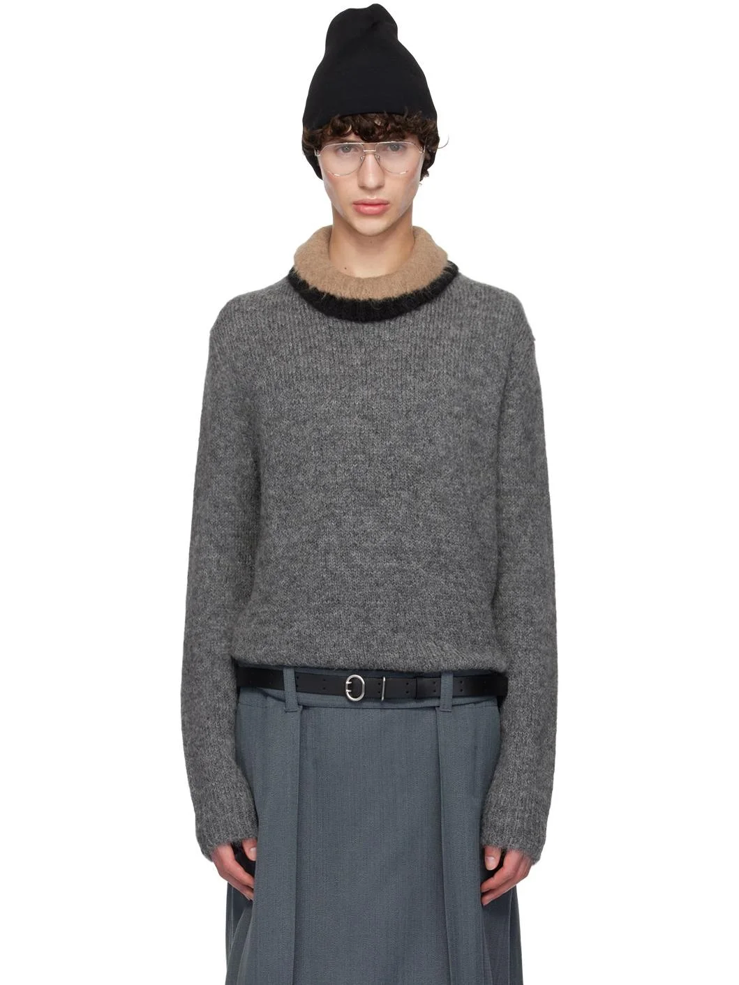 Knit alpaca- and virgin wool-blend sweater. Rib knit crewneck, hem, and cuffs. Supplier color: Asphalt 81% alpaca, 17% virgin wool, 2% polyamide. Made in Italy 242249M201006