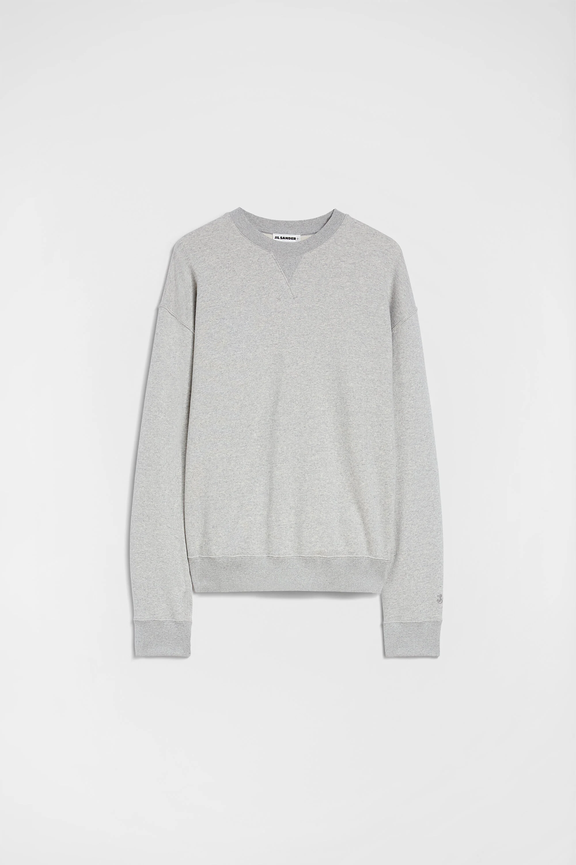 Long-sleeved cotton terry sweatshirt with embroidered Jil Sander+ monogram Details - relaxed fit - dropped shoulders - ribbed neck, hem and cuffs - triangle rib detail on front - Jil Sander+ logo embroidered on left sleeve - compact cotton terry - 100% cotton - made in Italy - StyleID: J47GU0128J20010052 Care - dry clean only - iron with care Fit - model is 187cm/6'1" and is wearing a size M - Please note that the physical label of the item will show the international size
