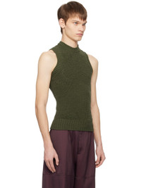 Knit stretch cotton tank top. Rib knit crewneck, hem, and armscyes. Supplier color: Military green