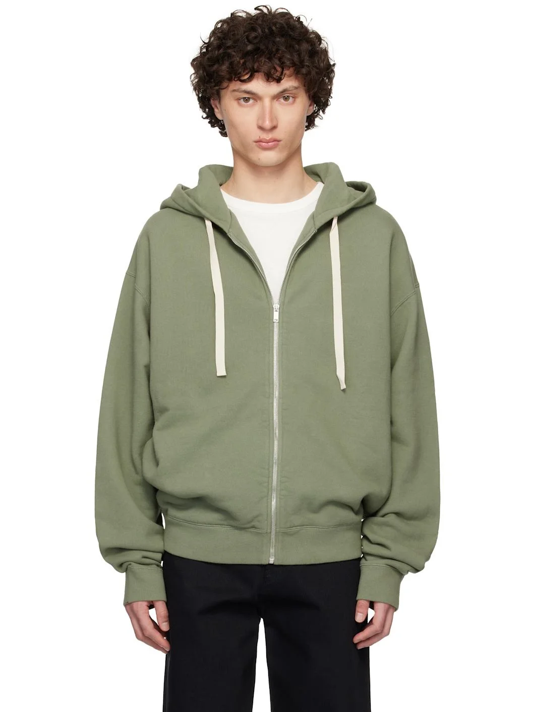 French terry hoodie. · Drawstring at hood · Zip closure · Seam pockets · Rib-knit hem and cuffs · Dropped shoulders · Logo embroidered at cuff Supplier color: Slate green 100% cotton. Made in Italy 251249M202000