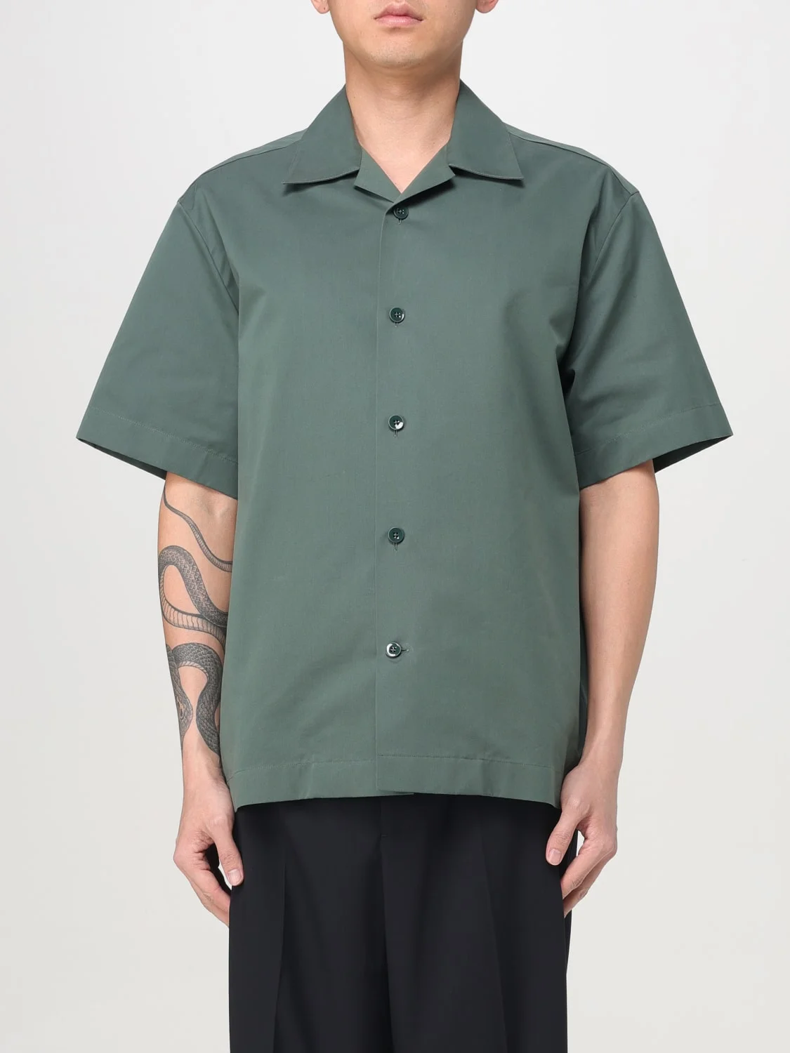 DESCRIPTION - Style: Urban-street - Neck: Cuban collar - Shoulders: Relaxed - Closure: With buttons - Bottom: With straight hemline - Sleeves: Short sleeve shirts - Materials: Cotton - Pattern: Plain-colored DETAILS AND CARE Composition _86% CO 14% SE SIZE AND FIT Sizes not available Size and fit Relaxed fit Designer code: J22DL0303J45266 028 Giglio Code: G45024 Designer: Jil Sander Collection: Jil Sander Men Category: Clothing Jil Sander