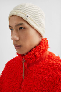 Fine-knit rib merino wool hat with printed Jil Sander+ logo Details - Jil Sander+ logo printed on label - 90% wool 8% polyamide-nylon 2% elastane-spandex - made in Italy - StyleID: J47ZZ0130J14773107 Care - dry clean only - iron with care