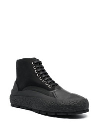hi-top sneakers black cotton logo patch at the tongue ankle-length front lace-up fastening textured finish Imported Composition Outer: Cotton 100%, Calf Leather 100% Lining: Calf Leather 100% Sole: Rubber 100% SIZE & FIT Measurement HEEL 0.98 in(2.5 cm) HEIGHT 5.11 in(13 cm) Sole height 0.78 in(2 cm)