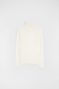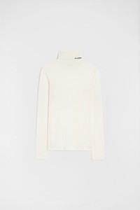 Long-sleeved t-shirt with Jil Sander+ logo printed on neck Details - slim fitted - long sleeves - high neck - Jil Sander+ logo printed on neck side - 55% polyester, 45% virgin wool - made in Italy - StyleID: J47GC0020J70021102 Care - dry clean only Fit - model is 187cm/6'1" and is wearing a size M - Please note that the physical label of the item will show the international size