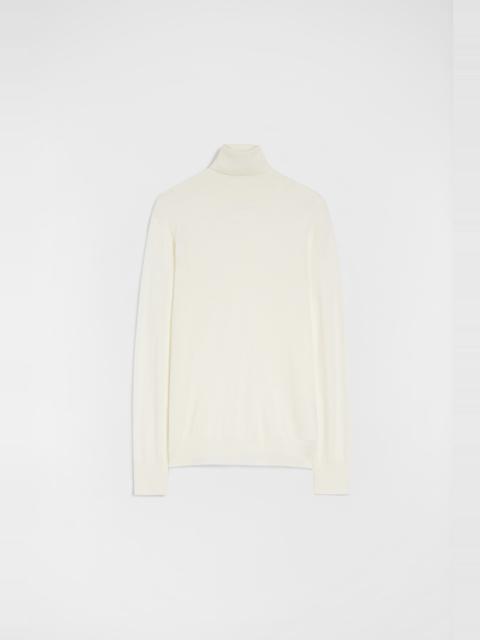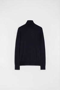 Lightweight long-sleeved merino wool sweater Details - relaxed fit and boxy shape - high neck and dropped shoulders - back slit on neck - fully fashioning detail on the back - ribbed neck, hem and cuffs - lightweight merino wool - 100% wool - made in Italy - StyleID: J23GP0001J14531402 Care - dry clean only - iron with care Fit - model is 187cm/6'1" and is wearing a size 48 IT - Please note that the physical label of the item will show the Italian size