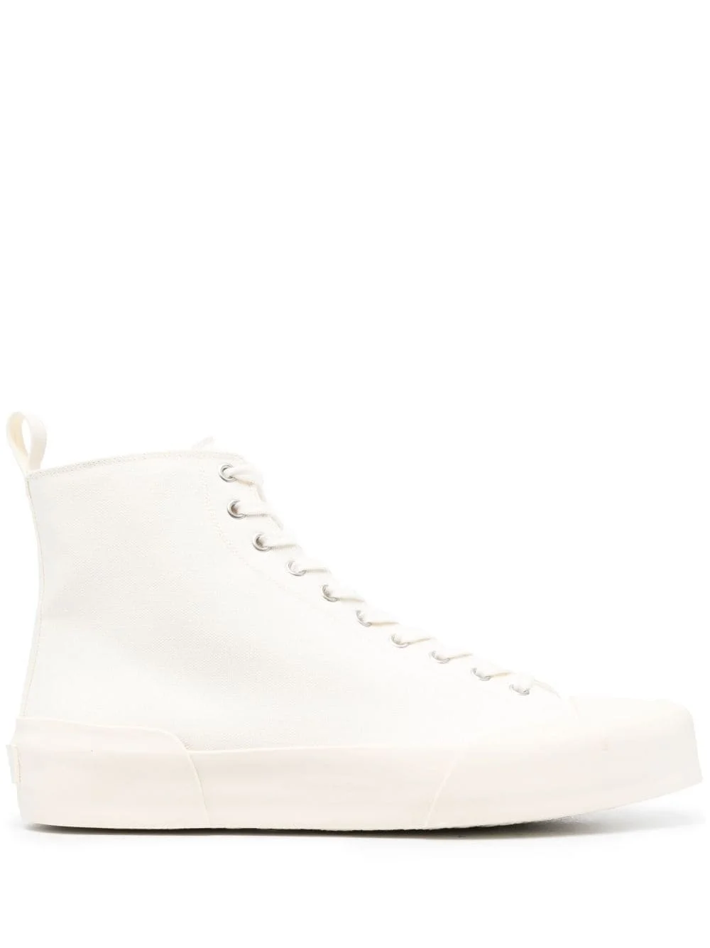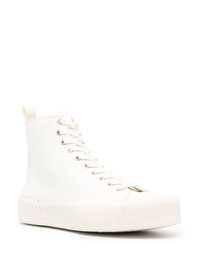high-top leather sneakers Highlights - White - Calf leather - Branded leather insole - Pull-tab at the heel - Almond toe - Front lace-up fastening - Vulcanised-rubber sole Imported Composition Lining: Calf Leather 100%, Fabric 100% Outer: Fabric 100% Sole: Rubber 100% SIZE & FIT Measurement HEEL 1.37 in(3.5 cm) Sole height 0.98 in(2.5 cm) HEIGHT 4.72 in(12 cm)