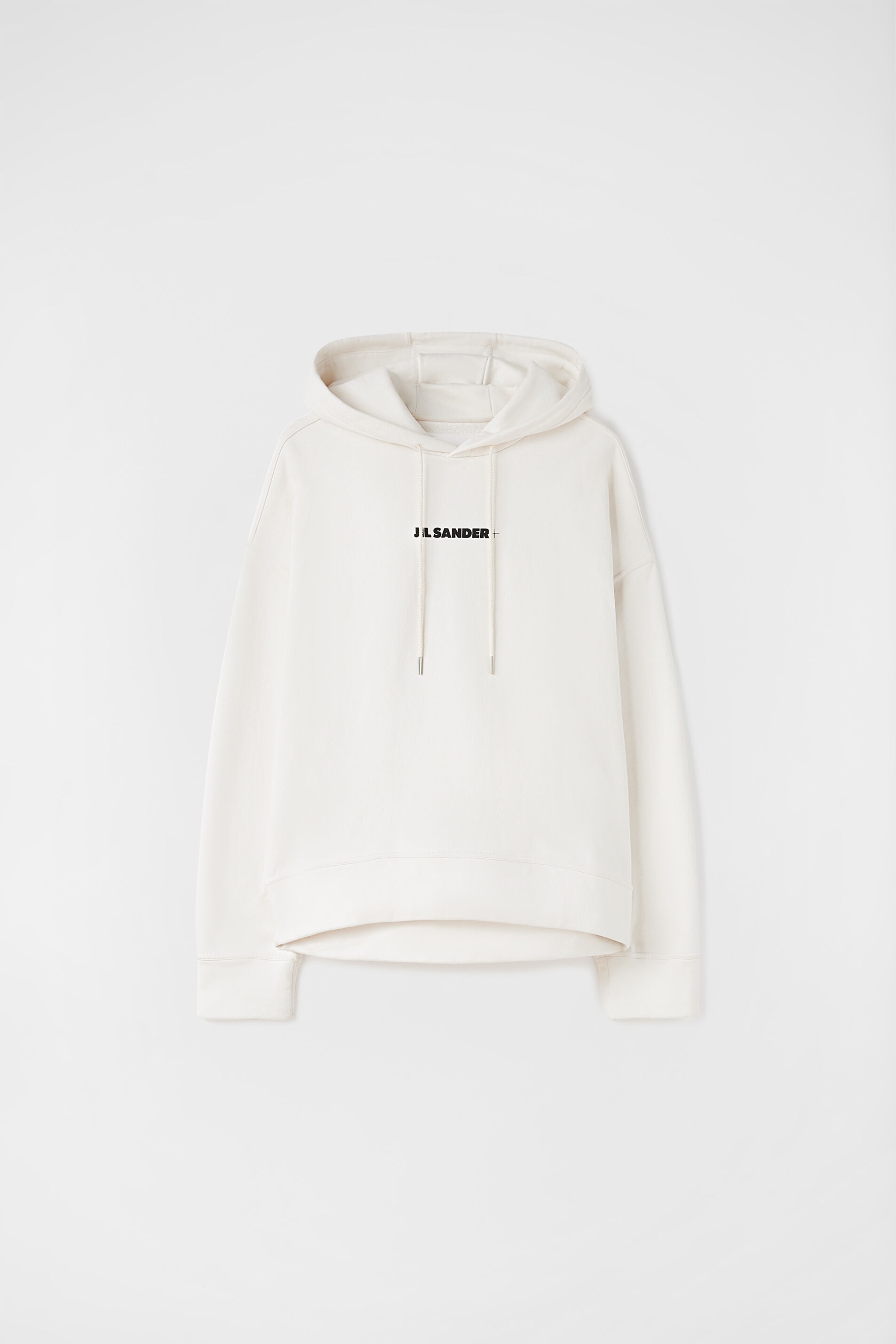 Long-sleeved organic cotton sweatshirt with Jil Sander+ printed logo Details - oversized fit and boxy shape - crew neck - hood with drawstring fastening - Jil Sander+ printed logo - french terry cotton - 100% cotton - made in Italy - style ID: J47GU0002-J45050 Care - hand wash - iron with care Size and measurements - International sizing - model is 187cm/6'1" and is wearing a size M
