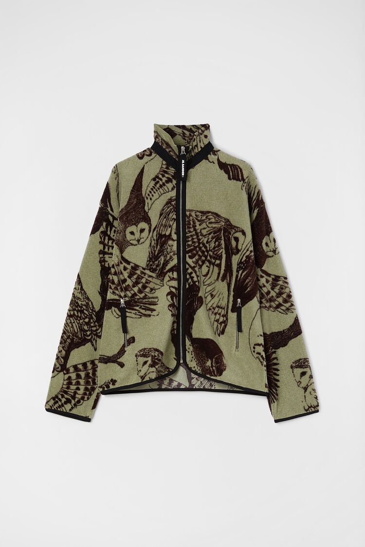 Jacquard cotton fleece sweatshirt with front zip closure Details - relaxed fit and boxy shape - dropped shoulders and stand collar - front zip closure - side zipped pockets - black tape trims - Jil Sander+ logo printed on zip puller - cotton lining - cotton jacquard fleece - 100% cotton - made in Italy - StyleID: J47HG0105J20239386 Care - dry clean only - iron with care Details - model is 187cm/6'1" and is wearing a size M - Please note that the physical label of the item will show the international size