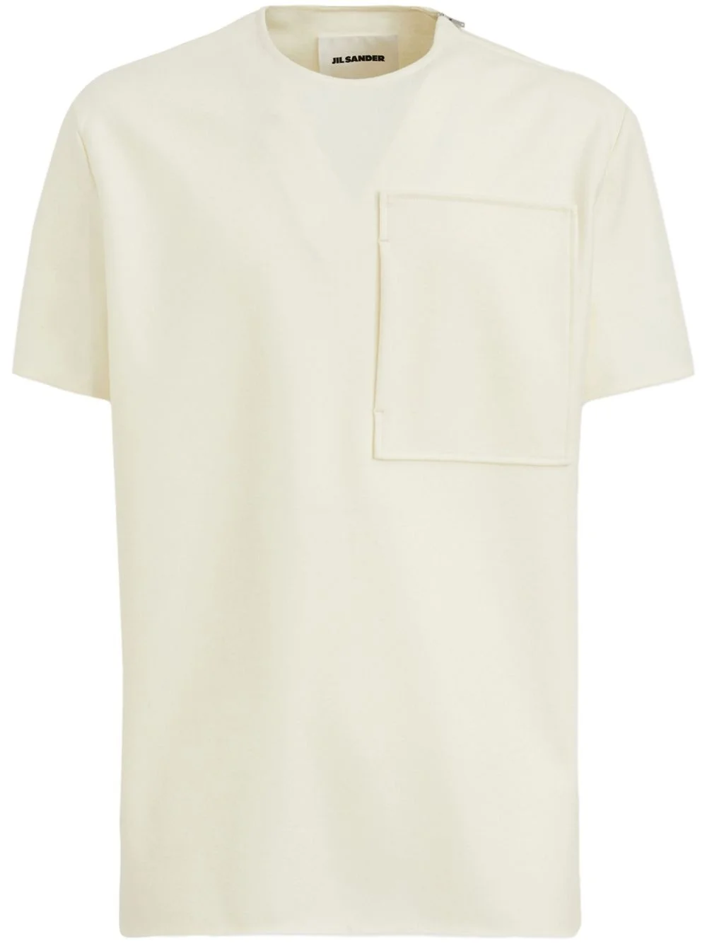 wool t-shirt Highlights - Beige - Wool - Crew neck - Short sleeves - Shoulder zip fastening - Chest patch pocket - Straight hem - Internal logo patch Made in Italy Composition Wool 100% SIZE & FIT FittingInformation Designed to be unstructured, offering a loose fit throughout Made from a midweight non-stretch fabric, this piece offers minimal elasticity when worn