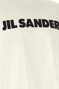 cod. J22GC0221J20347102 Light cotton jersey T-shirt with contrast 'Jil Sander' logo print on the front, crew neck, short sleeves with dropped shoulders. Color: White/Black Size & Fit: oversized and boxy fit Composition: 100% cotton Made in: Italy