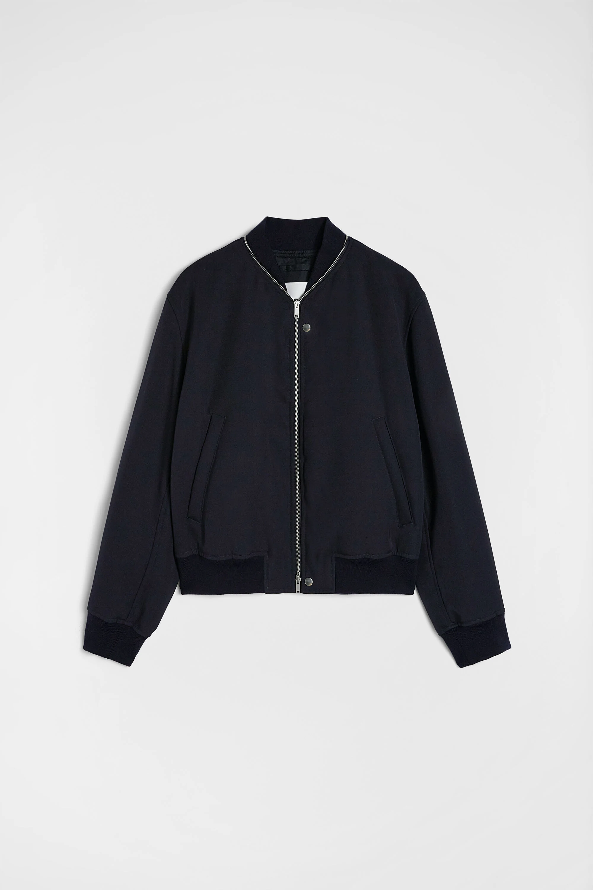 Fully-lined wool gabardine bomber jacket Details - regular fit and boxy shape - soft dropped shoulders - zip closure - zip guard with visible snaps - rib collar and cuffs - side welt pockets - sharp wool gabardine - 100% wool - made in Italy - StyleID: J23BN0004J40002401 Care - dry clean only - iron with care Fit - model is 187cm/6'1" and is wearing a size 48 IT - Please note that the physical label of the item will show the Italian size
