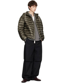 Down-filled and quilted recycled nylon ripstop jacket. · Cord-lock drawstring at hood · Zip closure · Zip pockets at waist · Concealed drawstring at hem · Elasticized cuffs · Patch pocket at interior · Fully lined Supplier color: Pickle Body: 100% polyamide. Fill 1: 85% goose down, 15% goose feather. Fill 2: 100% polyester. Lining: 100% polyamide. Made in Italy 252249M178002