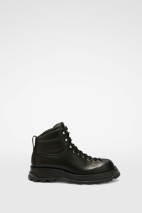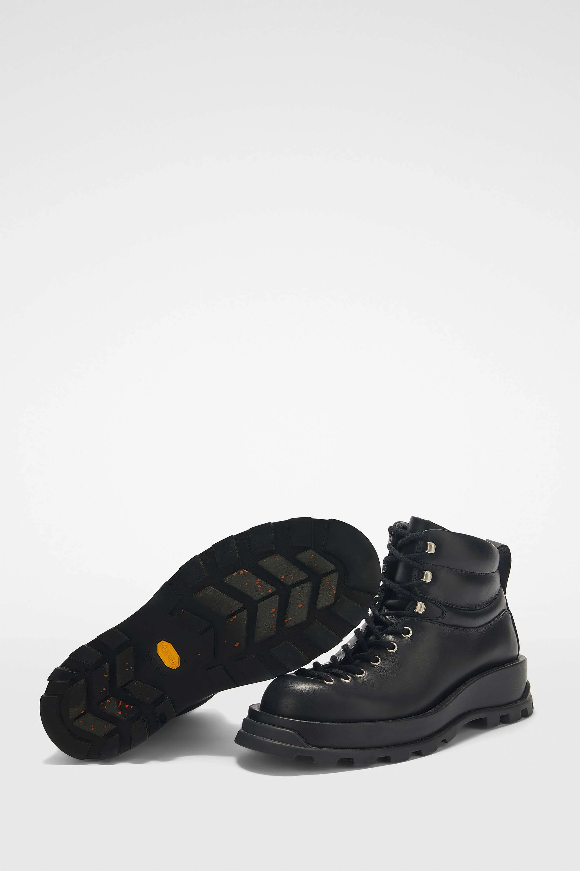 Leather ankle boot with Vibram rubber outersole with artic grip technology Details - round toe and lace-up front - leather insole and lining - Vibram rubber outersole with artic grip technology - water, ice and snow resistant outersole - superior grip on extreme terrain - Jil Sander logo branded insole - 100% calf leather - made in Italy - StyleID: J50WU0014P4942001