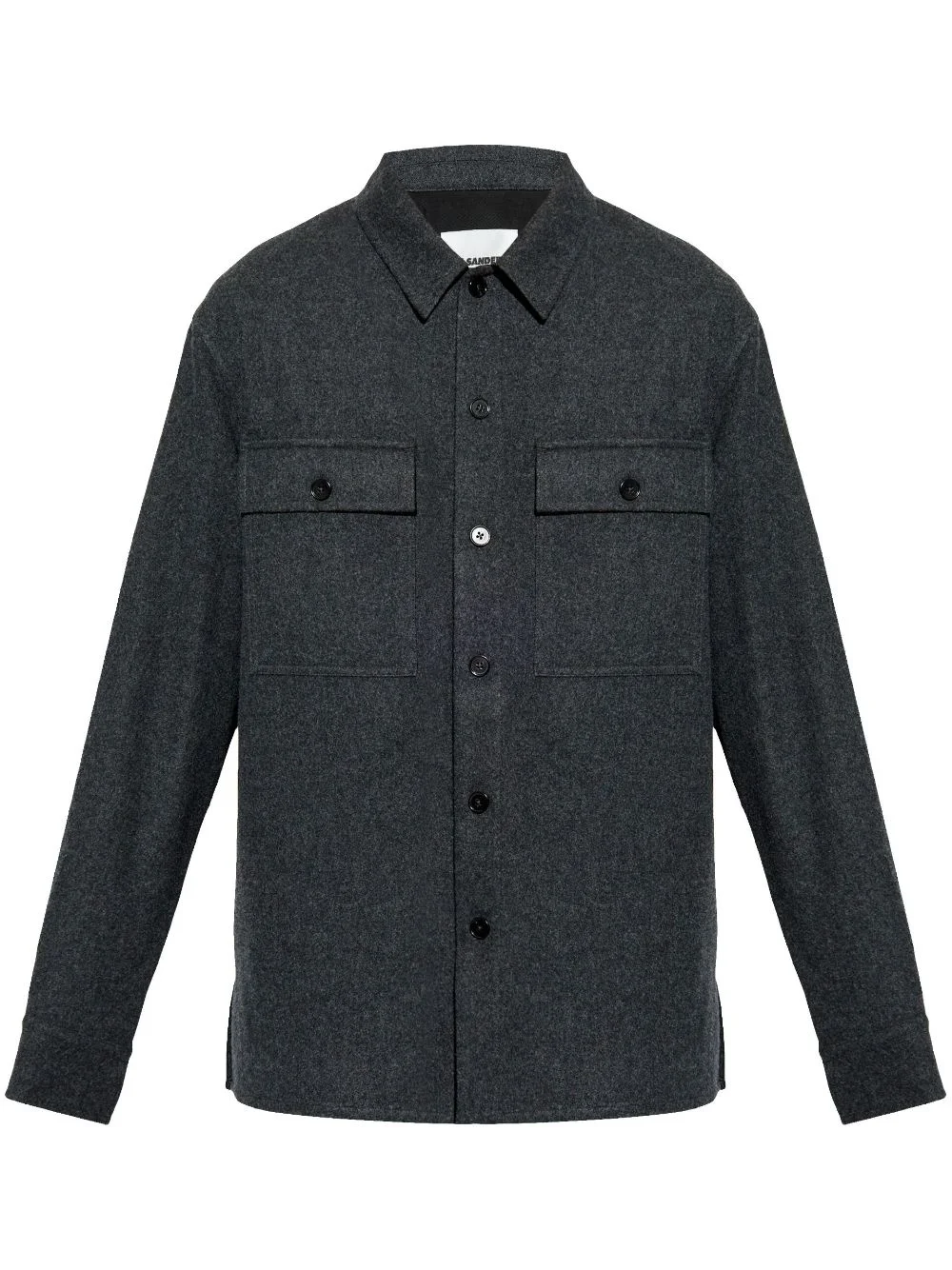 virgin-wool shirt Highlights - Grey - Virgin wool - Flannel - Melange effect - Front button fastening - Classic collar - Long sleeves - Two chest flap pockets - Buttoned cuffs - Straight hem Made in Italy Composition Virgin Wool 100% SIZE & FIT FittingInformation Designed for a relaxed fit, this piece allows for comfort and movement when worn Made from a midweight non-stretch fabric