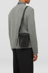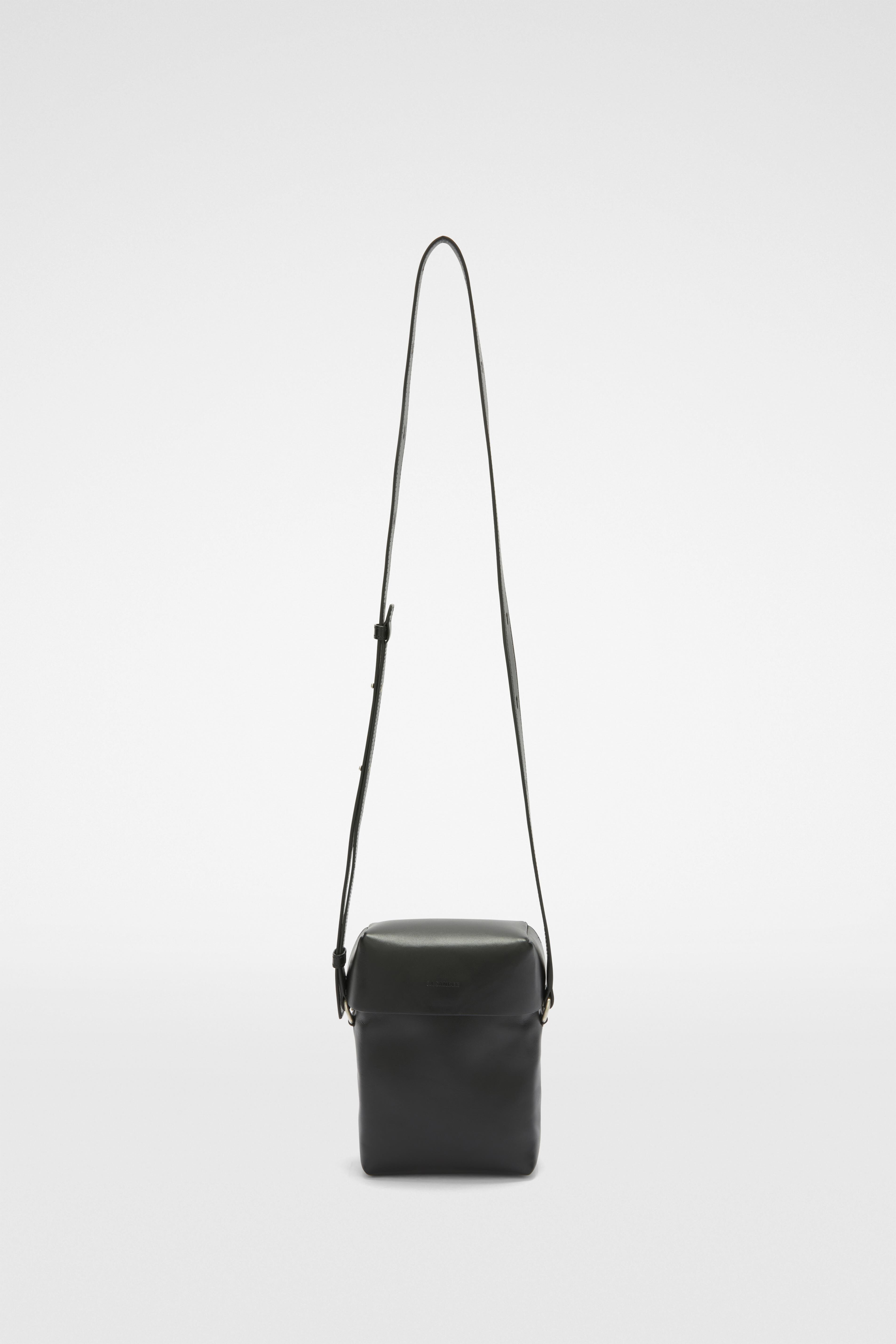 Small-sized leather crossbody bag with embossed Jil Sander logo Details - squared shape - adjustable leather shoulder strap - zip closure - magnetic button closure - blind embossed Jil Sander logo - 100% calf leather - w 13 cm x h 18 cm x d 6 cm - made in Italy - StyleID: 8059695560575