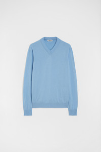 Long-sleeved lightweight wool sweater with padded v-neck Details - regular fit - ribbed v-neck - ribbed hem and cuffs - lightweight knitted wool - 100% wool - made in Italy - StyleID: J61GP0016J14823456 Care - dry clean only - iron with care Fit - model is 187cm/6'1" and is wearing a size 48 IT - Please note that the physical label of the item will show the Italian size
