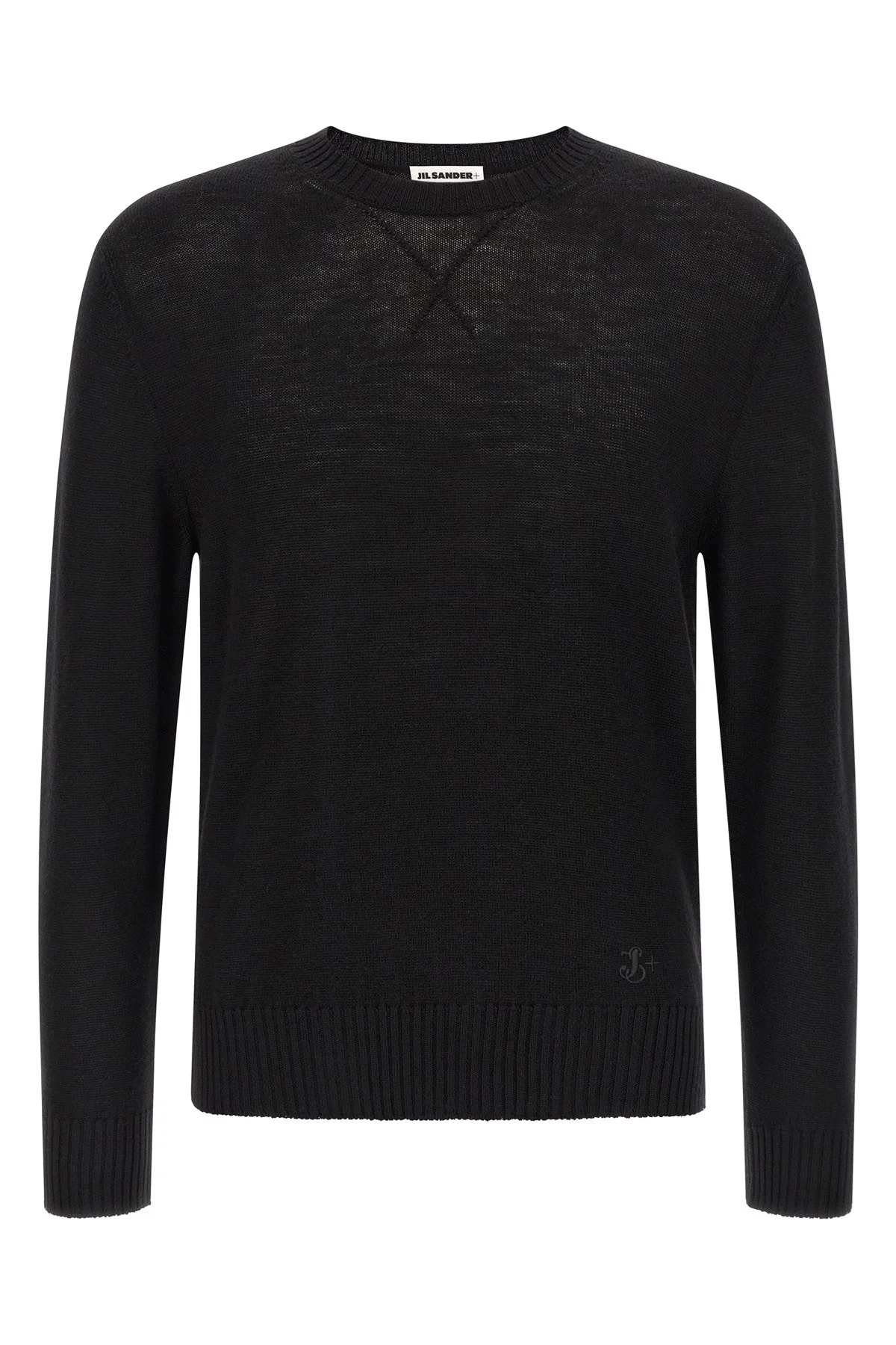 cod. J47GP0189J14772001 Knitted virgin wool sweater with tone-on-tone logo embroidery on the front, crew neck, long sleeves with cuffs and dropped shoulder. Color: Black Size & Fit: Relaxed fit Composition: 100% virgin wool Made in: Italy