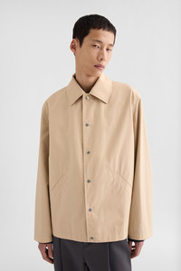 Lightweight cotton poplin blouson jacket with printed Jil Sander logo on the back Details - relaxed fit and boxy shape - flat collar and dropped shoulders - snap button closure - jetted pockets - adjustable button closure cuff - printed Jil Sander logo on back - lightweight water repellent cotton poplin - 100% cotton - made in Italy - StyleID: J23BN0003J45026236 Care - dry clean only - iron with care Fit - model is 187cm/6'1" and is wearing a size 48 IT - Please note that the physical label of the item will show the Italian size