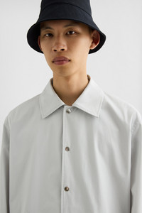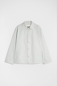 Compact cotton taffeta jacket with printed Jil Sander logo on the back Details - relaxed fit and boxy shape - flat collar and dropped shoulders - snap button closure - two jetted pockets - adjustable button closure cuff - Jil Sander logo printed on the back - compact cotton taffeta - 100% cotton - made in Italy - StyleID: J54BN0002J45306058 Care - dry clean only - iron with care Fit - model is 187cm/6'1" and is wearing a size M - Please note that the physical label of the item will show the international size