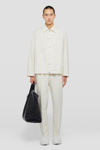 Lightweight cotton poplin blouson jacket with printed Jil Sander logo on the back Details - relaxed fit and boxy shape - flat collar and dropped shoulders - snap button closure - jetted pockets - adjustable button closure cuff - printed Jil Sander logo on the back - cotton poplin - 100% cotton - made in Italy - StyleID: J23BN0003J45071103 Care - dry clean only - iron with care Fit - model is 187cm/6'1" and is wearing a size 48 IT - Please note that the physical label of the item will show the Italian size