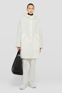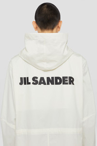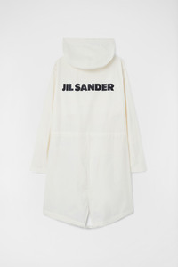 Half-lined cotton poplin hooded parka with printed Jil Sander logo Details - mid-length and oversized fit - snap button closure and drawstring waist and hem - two flap pockets with reinforcement stitching detail - rounded hem with shorter front - printed Jil Sander logo on the back - cotton poplin - 100% cotton - made in Italy - StyleID: J23AA0008J45070103 Care - dry clean only - iron with care Fit - model is 187cm/6'1" and is wearing a size 48 IT - Please note that the physical label of the item will show the Italian size