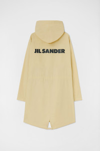 Half-lined cotton poplin hooded parka with printed Jil Sander logo Details - mid-length and oversized fit - snap button closure and drawstring waist and hem - two flap pockets with reinforcement stitching detail - rounded hem with shorter front - printed Jil Sander logo on the back - cotton poplin - 100% cotton - made in Italy - StyleID: J23AA0008J45070740 Care - dry clean only - iron with care Details - model is 187cm/6'1" and is wearing a size 46 IT