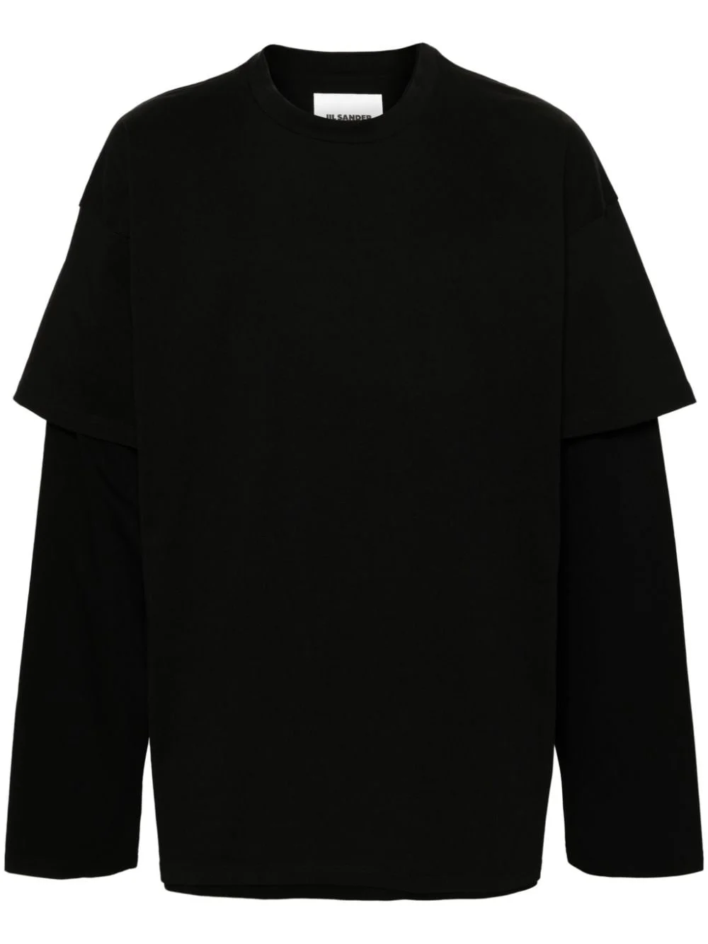 logo-print layered T-shirt Highlights - Black - Cotton - Lightweight jersey - Layered design - Logo print to the rear - Crew neck - Long sleeves - Straight hem Made in Italy Composition Cotton 100% SIZE & FIT Model measurements Height 6 ft 2 in(1.87 m) Bust/Chest 36.41 in(92.5 cm) Hips 35.43 in(90 cm) Waist 29.52 in(75 cm) FittingInformation Designed for a boxy fit, intended for a loose fit throughout Made from a midweight non-stretch fabric, this piece offers minimal elasticity when worn This piece fits true to size – take your usual size