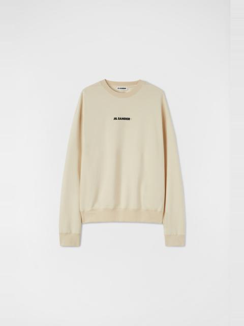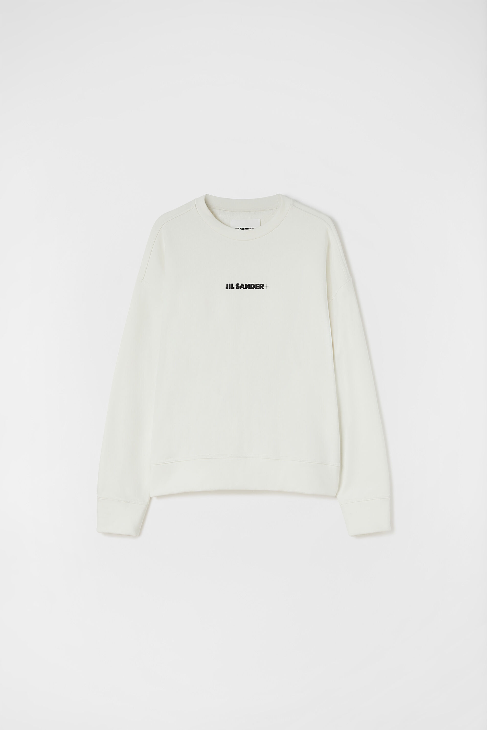 Long-sleeved organic cotton sweatshirt with Jil Sander+ printed logo Details - oversized fit and boxy shape - crew neck - Jil Sander+ printed logo - french terry cotton - 100% cotton - made in Italy - style ID: J47GU0001-J45050 Care - hand wash - iron with care Size and measurements - International sizing - model is 187cm/6'1" and is wearing a size M