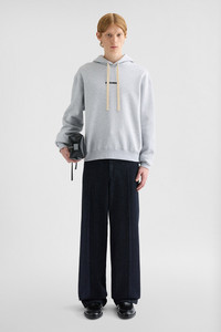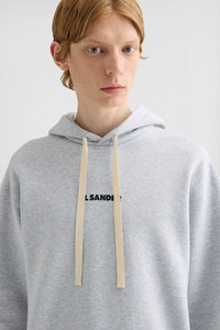 Long-sleeved lightweight cotton terry hooded sweatshirt with Jil Sander printed logo Details - relaxed fit and boxy shape - dropped shoulders - hood drawstring - Jil Sander logo printed on chest - lightweight cotton terry - 100% cotton - made in Italy - StyleID: J22GU0149J20133031 Care - hand wash - iron with care Fit - model is 187cm/6'1" and is wearing a size M - Please note that the physical label of the item will show the international size