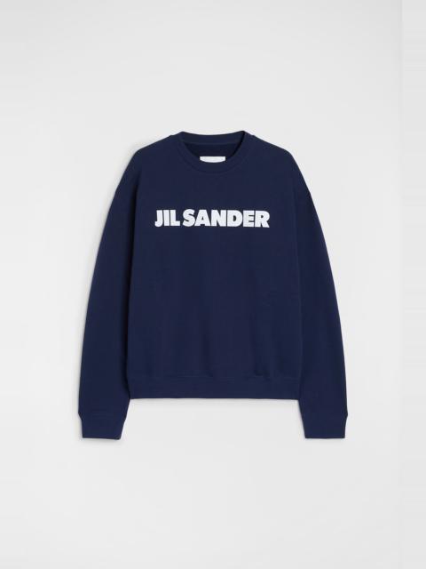 Long-sleeved cotton terry sweatshirt with printed Jil Sander logo Details - relaxed fit - dropped shoulders - ribbed crew neck, hem and cuffs - Jil Sander printed logo on front - compact cotton terry - 100% cotton - made in Italy - StyleID: J54GU0003J20010052 Care - machine wash to 30°C - iron with care Fit - model is 187cm/6'1" and is wearing a size M - Please note that the physical label of the item will show the international size