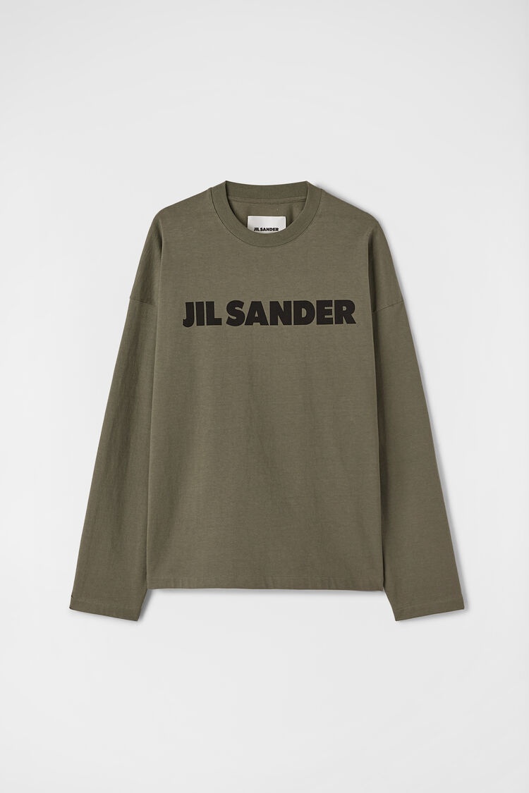 Cotton jersey t-shirt with Jil Sander printed logo Details - oversized and long fit - dropped shoulders - long sleeves - ribbed crew neck - Jil Sander printed logo on front - stiff lightweight cotton jersey - 100% cotton - made in Italy - StyleID: J22GC0136J20215312 Care - hand wash - iron with care Details - model is 187cm/6'1" and is wearing a size M - Please note that the physical label of the item will show the international size