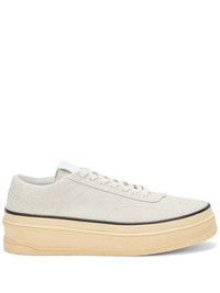 low-top leather sneakers Famed for their minimalist vision, Jil Sander presents these low-top sneakers in a cream-white shade. Enhanced with only a thin black stripe, they emphasises the simplicity and timelessness of the brand. Highlights - Cream white - Calf leather - Round toe - Front lace-up fastening - Logo patch at the tongue - Branded insole - Platform sole Made in Italy Composition Outer: Calf Leather 100% Lining: Calf Leather 100% SIZE & FIT Measurement HEEL 1.57 in(4 cm) Sole height 1.18 in(3 cm)