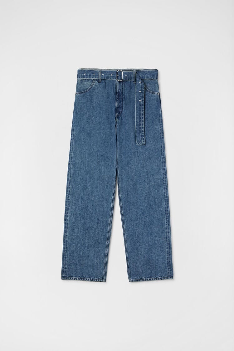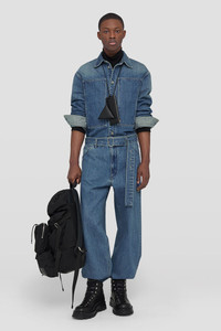 Loose-fit Japanese raw denim trousers with embossed Jil Sander+ logo and detachable belt Details - loose fit and dropped crotch - button closure - five pockets - detachable belt with buckle - Jil Sander+ logo embossed on back leather label - light-washed Japanese raw denim with selvedge - 100% cotton - made in Japan - StyleID: J47KA0249J45259445 Care - hand wash - iron with care Fit - model is 187cm/6'1" and is wearing a denim size 30 - Please note that the physical label of the item will show the Denim sizing