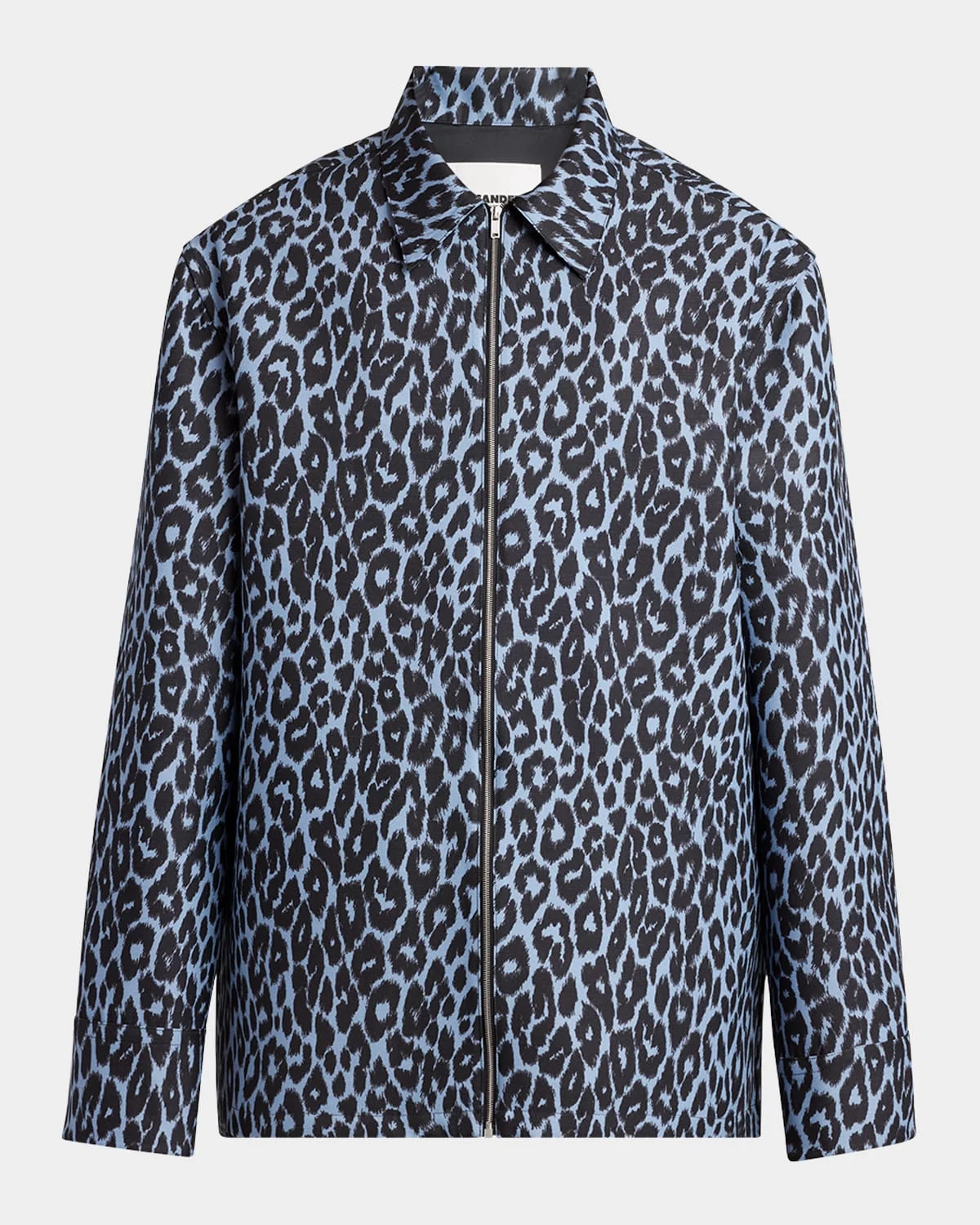 - Jil Sander shirt jacket defined by a bold cheetah print - Shirt collar - Full-zip front - Side slip pockets - Long sleeves - Single-button cuffs - Back yoke - Wool/silk - Lining: Viscose - Dry clean - Made in Italy