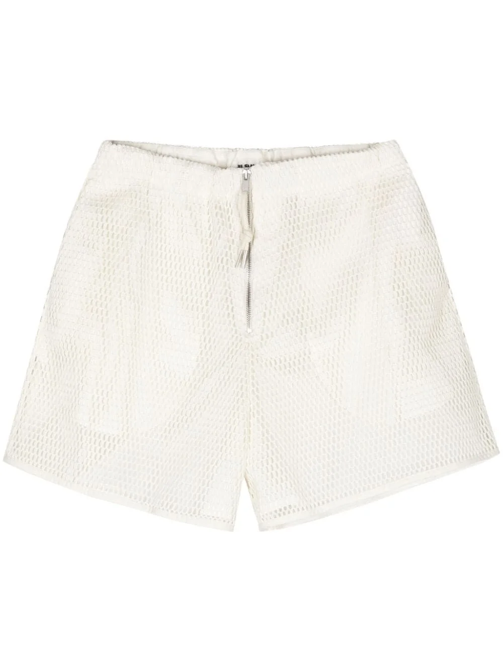 mesh cotton shorts Highlights - Chalk white - Cotton - Mesh design - Elasticated waistband - Two side inset pockets - Two rear welt pockets - Internal drawstring fastening waist - Full lining - Thigh-length - Front zip fastening Made in Italy Composition Outer: Polyester 100%, Cotton 100% Lining: Cotton 100%