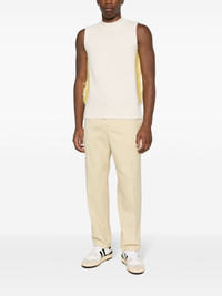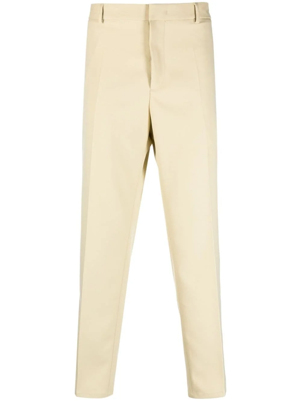 mid-rise straight-leg trousers Highlights - Light yellow - Cotton - Pressed crease - Belt loops - Concealed front fastening - Rear elasticated waistband - Mid-rise - Straight leg - Two side inset pockets - Two rear welt pockets Made in Italy Composition Outer: Polyester 100% Lining: Cotton 100% SIZE & FIT Model measurements Height 6 ft 1 in(1.86 m) Bust/Chest 38.18 in(97 cm) Hips 38.18 in(97 cm) Waist 30.7 in(78 cm) FittingInformation Designed for a tapered leg, offering a loose unrestricted fit over the leg with a closer fit towards the ankle The partially elasticated waistband offers increased movement and comfort at the waist Made from a midweight non-stretch fabric This piece fits true to size – take your usual size Washing instructions Dry Clean Only