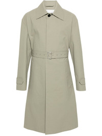 midi trench coat Highlights - Olive green - Cotton - Spread collar - Long sleeves - Detachable waist belt - Two side welt pockets - Central rear vent - Internal locker loop - Internal logo tag - Mid-length - Straight hem Made in Italy Composition Outer: Cotton 100% Lining: Cotton 100% SIZE & FIT Model measurements Height 6 ft 2 in(1.87 m) Bust/Chest 36.41 in(92.5 cm) Hips 37 in(94 cm) Waist 29.52 in(75 cm) FittingInformation Designed to be unstructured, offering a loose fit throughout The belt offers adjustability for fitted preferences Made from a midweight non-stretch fabric This piece fits true to size – take your usual size Washing instructions Dry Clean Only