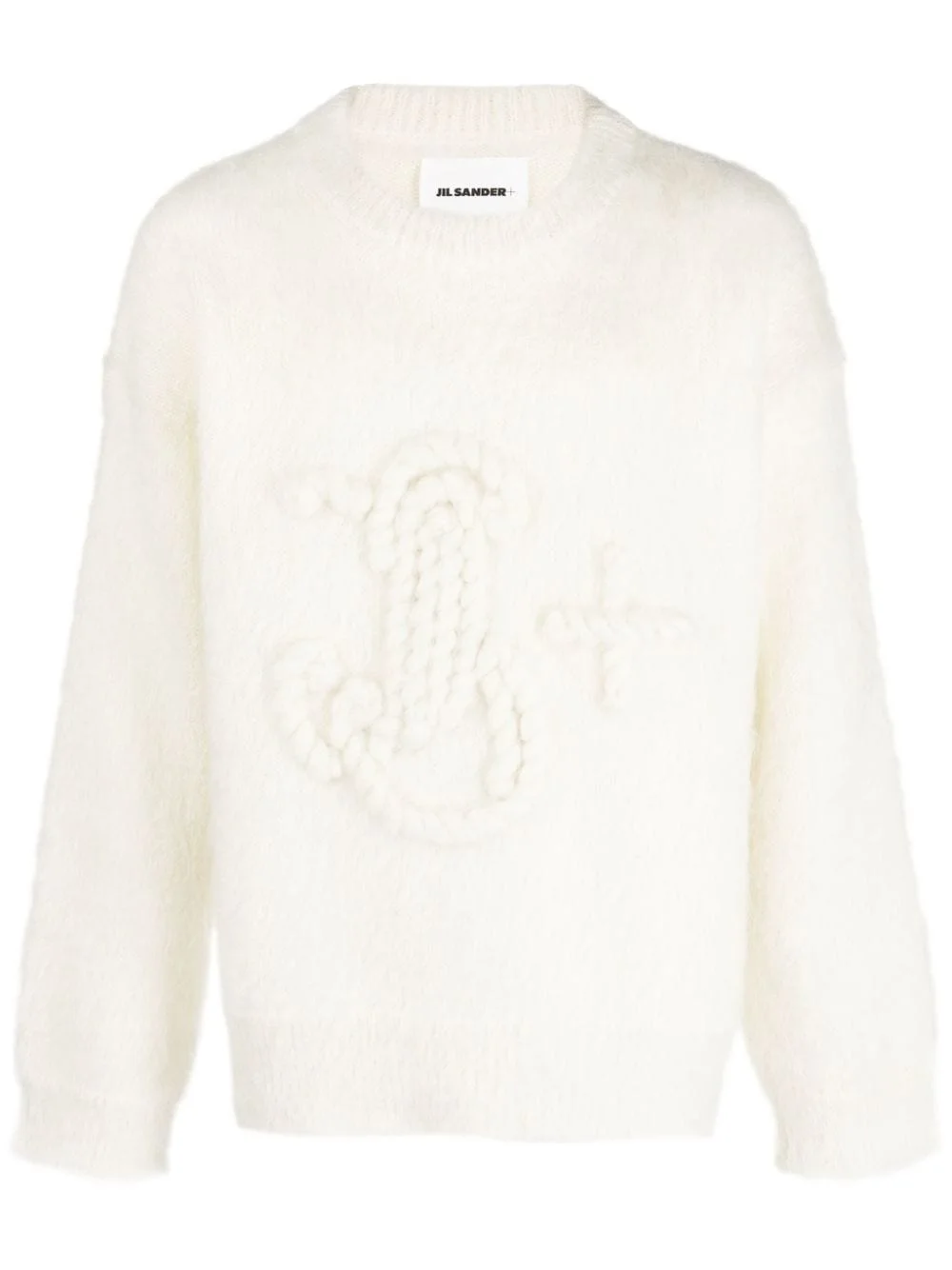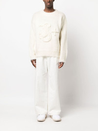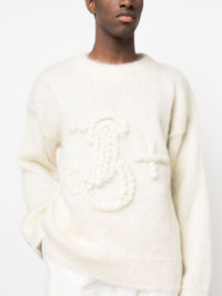 monogram-embroidered mohair-blend jumper Highlights - Eggshell white - Mohair blend - Knitted construction - Monogram rope embroidering to the front - Ribbed-knit edge - Crew neck - Drop shoulder - Long sleeves - Straight hem Made in Italy Composition Mohair 80%, Polyamide 20% SIZE & FIT Model measurements Height 6 ft 0 in(1.84 m) Bust/Chest 36.22 in(92 cm) Hips 35.43 in(90 cm) Waist 26.77 in(68 cm) FittingInformation Designed to be unstructured, offering a loose fit throughout Made from a midweight non-stretch fabric, this piece offers minimal elasticity when worn This piece fits true to size – take your usual size
