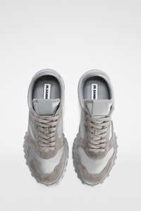 Low-top nylon and suede sneakers with rubber pebbles outersole Details - round toe and lace-up front - satin-effect nylon upper with suede trims - nylon and nappa lining - rubber pebbles outersole with embossed Jil Sander logo - fabric tongue with leather patch - Jil Sander logo embossed on back tab - Jil Sander logo branded insole - upper 100% polyester, suede trims 100% calf leather - made in Italy - StyleID: J32WS0056P0156090