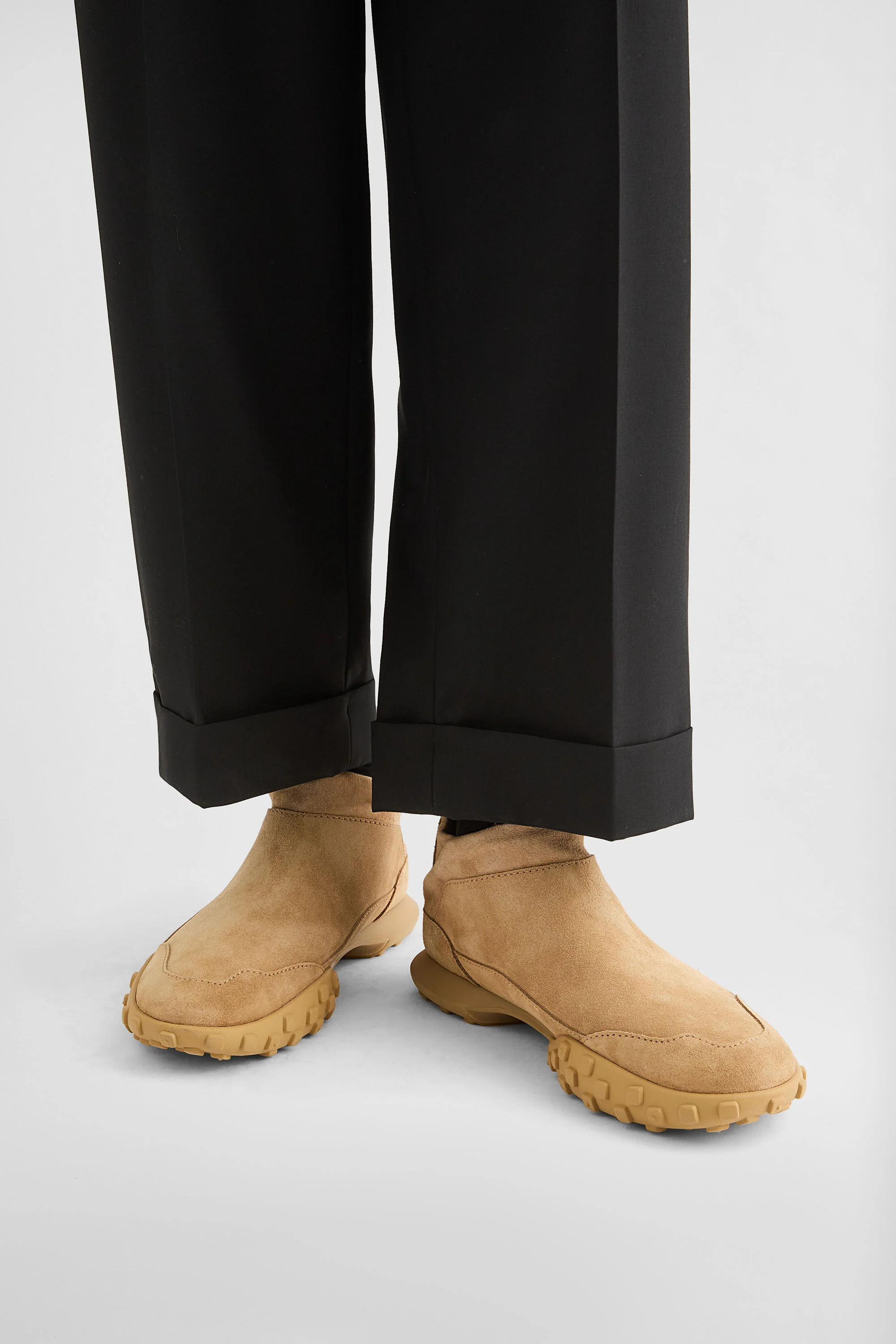 Low-top suede sneakers with rubber pebble outersole Details - round toe - stretch suede upper - neoprene lining - rubber pebble outersole with embossed Jil Sander logo - pull tabs - Jil Sander logo branded on back tab and insole - Jil Sander logo branded insole - 100% calf leather - made in Italy - StyleID: J32WS0067P7395235