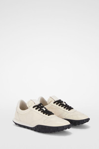 Low-top deerskin sneakers with rubber pebble outersole Details - round toe and lace-up front - mat wrinkle deerskin upper - nappa lining - rubber pebble outersole with embossed Jil Sander logo - fabric tongue with leather patch - Jil Sander logo embossed on back tab - Jil Sander logo branded insole - 100% deer - made in Italy - StyleID: J32WS0056P8178689